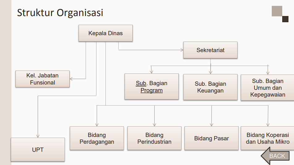 Berikut merupakan Bagan Organisasi Dinas Perdagangan, Perindustrian, Koperasi dan Usaha Mikro Kota Magelang: